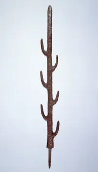 칠지도는 양날을 가진 칼로, 중앙 날과 양옆에 각각 3개의 가시 같은 날이 나 있어 총 7개의 날이 있음에 따라 붙은 이름입니다. 칼 표면에는 금박으로 60여자의 한자가 새겨져 있으며, 뛰어난 백제 당시 금속 공예술과 명문 기록이 결합된 고귀한 의례용 무기로 알려져 있습니다. 현재 일본 나라현 덴리시 이소노카미 신궁에 보관 중입니다.
